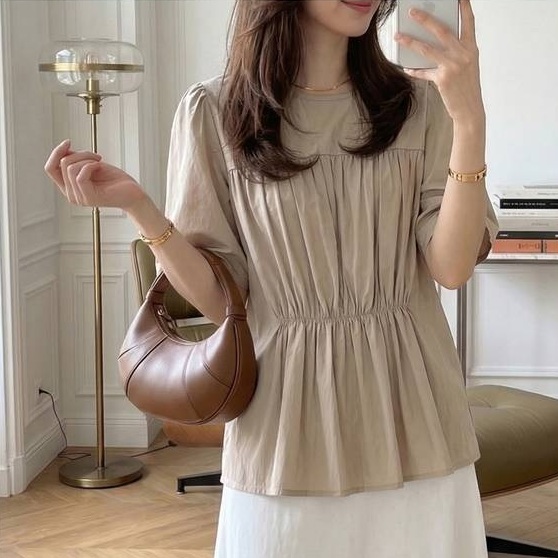 正韓 輕盈腰身抓褶設計感上衣襯衫【E75356】韓國代購 | Foreverkids 韓國時尚精品、韓國代購、正韓空運、洋裝、吊帶褲、外套、針織外套、寬褲