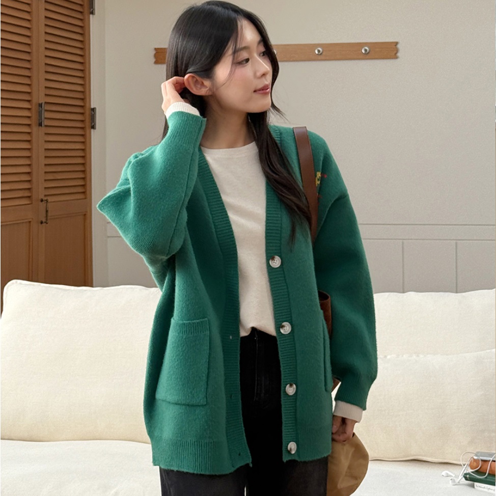 Forever Kids 正韓 長版口袋 背彩色字母印花 針織外套【B621337】 | Foreverkids 韓國時尚精品、韓國代購、正韓空運、洋裝、吊帶褲、外套、針織外套、寬褲