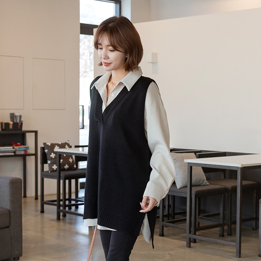 Forever Kids 正韓 長版V領開岔下擺 針織背心【A621301】 | Foreverkids 韓國時尚精品、韓國代購、正韓空運、洋裝、吊帶褲、外套、針織外套、寬褲