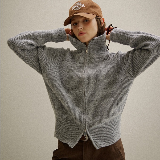 Forever Kids 正韓 柔軟雙拉鍊針織衫外套 S~L號【A62268】 | Foreverkids 韓國時尚精品、韓國代購、正韓空運、洋裝、吊帶褲、外套、針織外套、寬褲