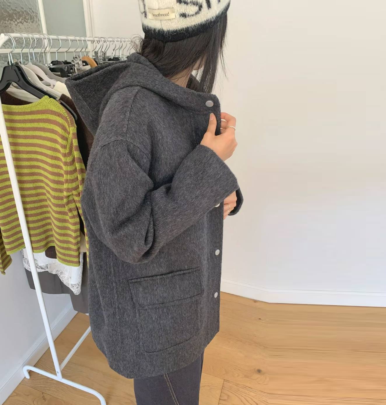 正韓 好看經典質感 連帽100%羊毛 Handmade大衣外套【A622203】韓國代購 | Foreverkids 韓國時尚精品、韓國代購、正韓空運、洋裝、吊帶褲、外套、針織外套、寬褲
