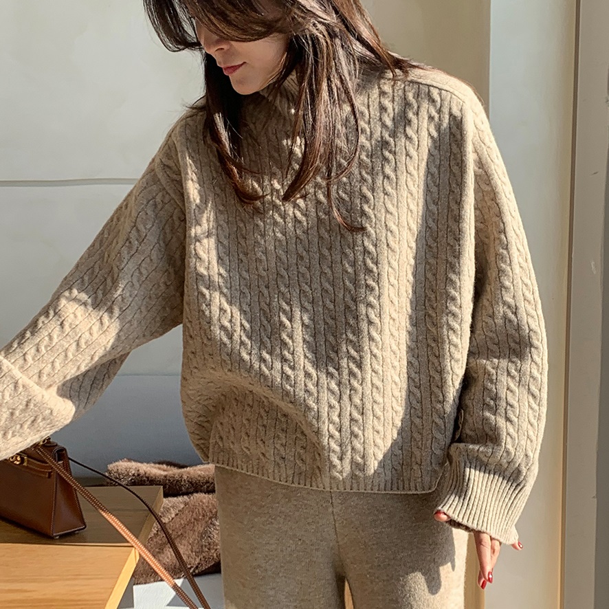 正韓 立體螺紋編織高領針織上衣【C62203】