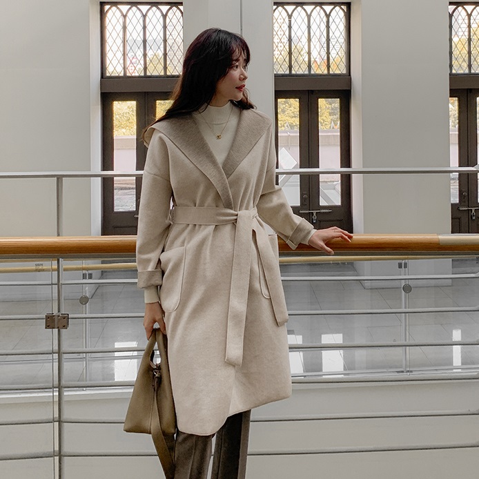 正韓 經典連帽口袋 有腰帶大衣外套【SR62238】
