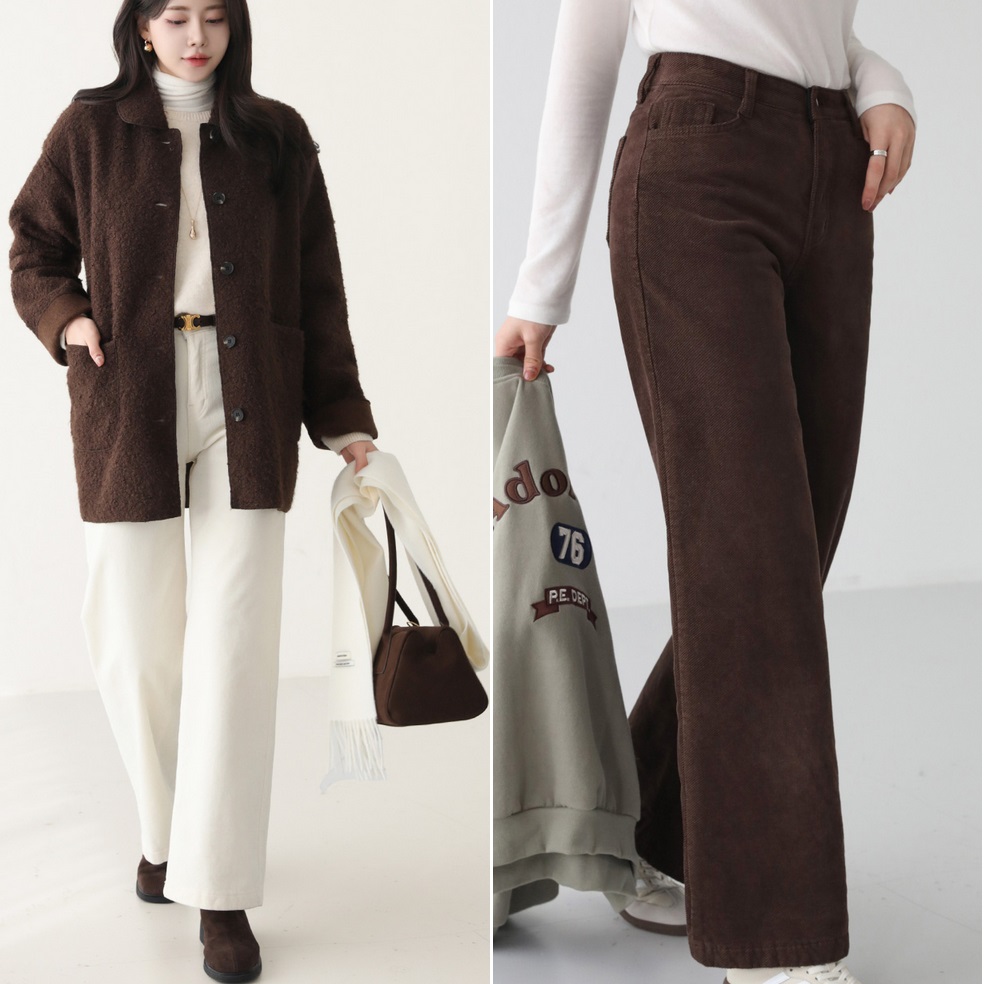 正韓 溫暖 內鬆緊腰斜紋燈芯絨 直筒抓絨內磨毛褲 SL~XXXL號【S~R62231】 | Foreverkids 韓國時尚精品、韓國代購、正韓空運、洋裝、吊帶褲、外套、針織外套、寬褲