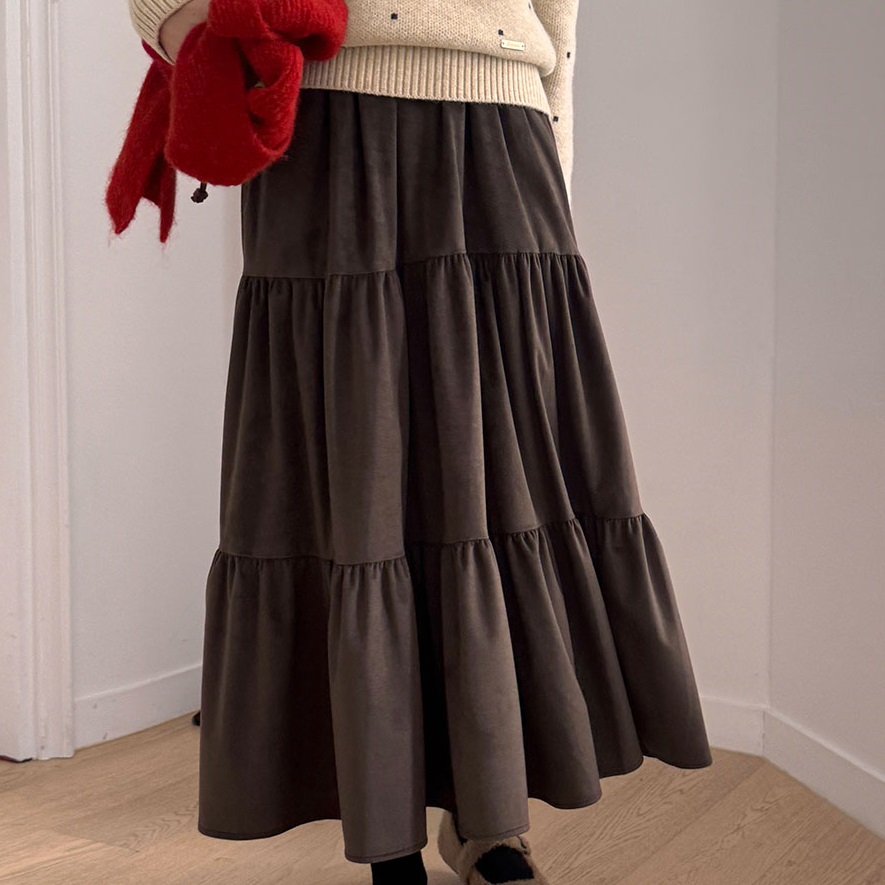 正韓 柔軟的天鵝絨褶皺線條蛋糕裙 長裙【HS622368】 | Foreverkids 韓國時尚精品、韓國代購、正韓空運、洋裝、吊帶褲、外套、針織外套、寬褲