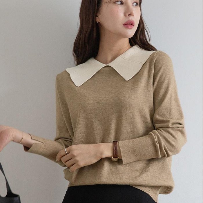 正韓 配色領氣質 開岔袖針織上衣【A50346】 | Foreverkids 韓國時尚精品、韓國代購、正韓空運、洋裝、吊帶褲、外套、針織外套、寬褲