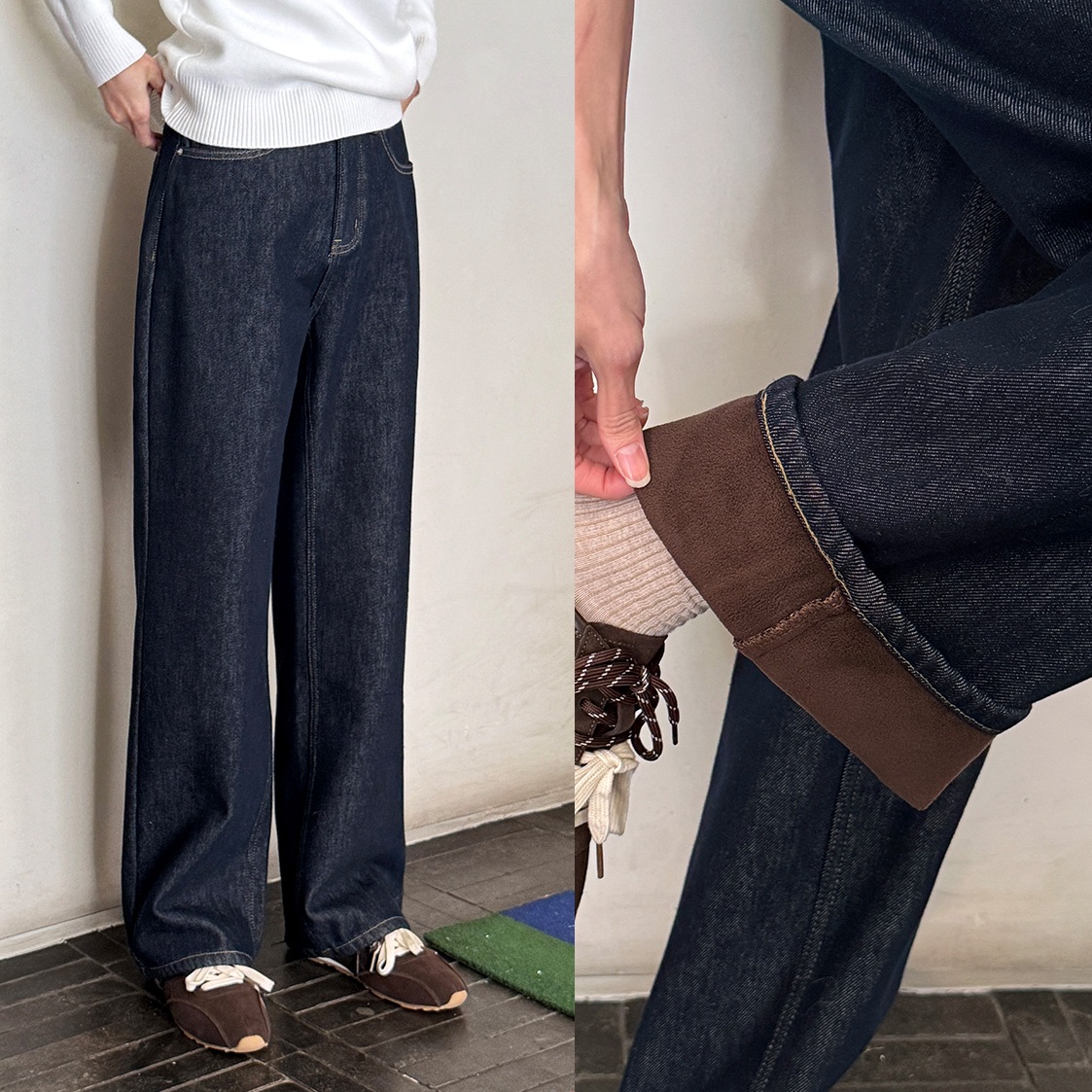 首頁 > 全部商品 > 正韓 不退色內刷毛 保暖深藍 牛仔直筒褲【A23348】韓國代購