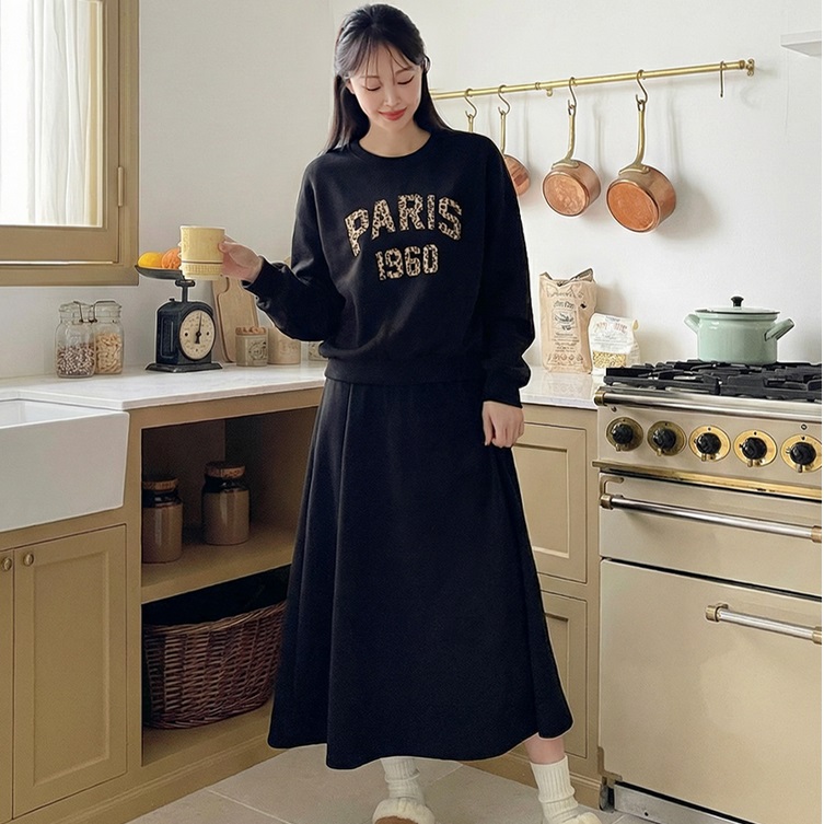 正韓 一套~豹紋字母內刷毛 長裙 套裝【A23415】 | Foreverkids 韓國時尚精品、韓國代購、正韓空運、洋裝、吊帶褲、外套、針織外套、寬褲
