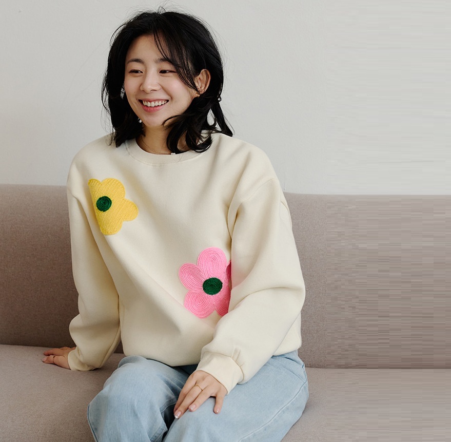 正韓 彩色花卉刺繡衛衣 上衣T【C623423】韓國代購