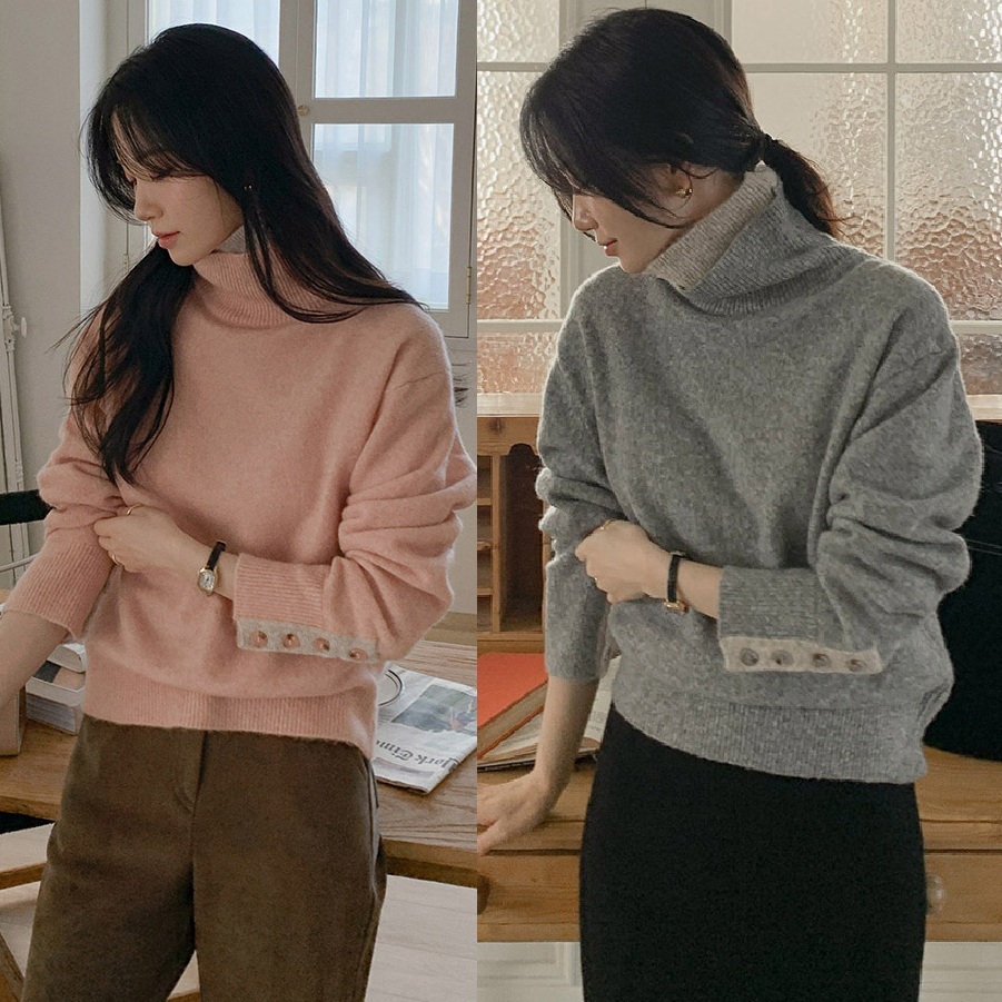 正韓 配色雙色層次感高領 袖口針織上衣【A72237】韓國代購 | Foreverkids 韓國時尚精品、韓國代購、正韓空運、洋裝、吊帶褲、外套、針織外套、寬褲