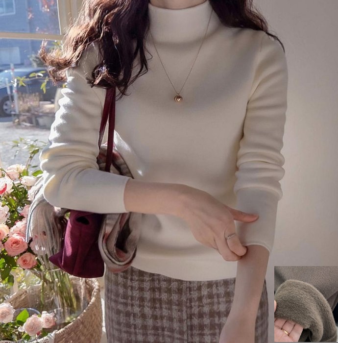 正韓 修身 內毛毛保暖微立領好彈性針織上衣【A62251】韓國代購 | Foreverkids 韓國時尚精品、韓國代購、正韓空運、洋裝、吊帶褲、外套、針織外套、寬褲