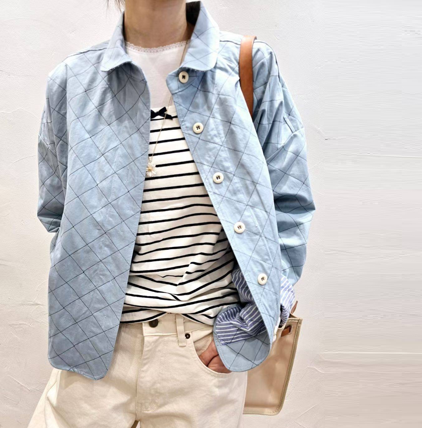 正韓 質感內裡條紋 絎縫外套菱格夾克外套【E74289】韓國代購