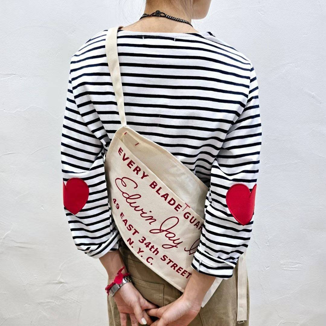 首頁 > 全部商品 > 正韓 好可愛愛心補丁 條紋棉T上衣【E7A4289】韓國代購