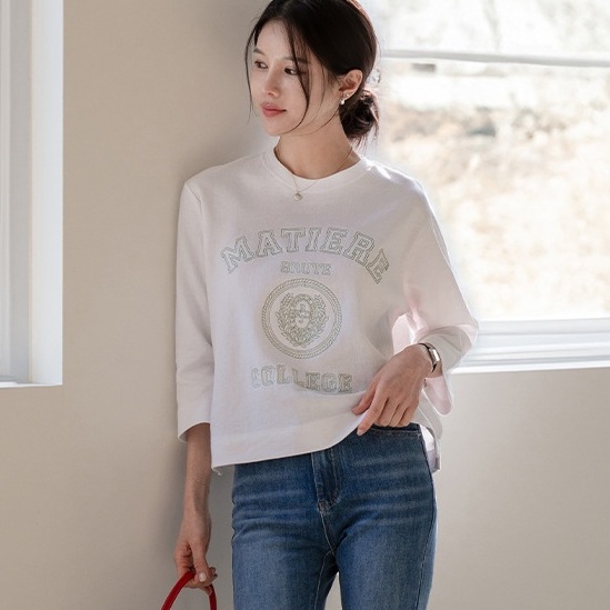 正韓 撞色字母七分袖 衛衣上衣【T74361】韓國代購 | Foreverkids 韓國時尚精品、韓國代購、正韓空運、洋裝、吊帶褲、外套、針織外套、寬褲