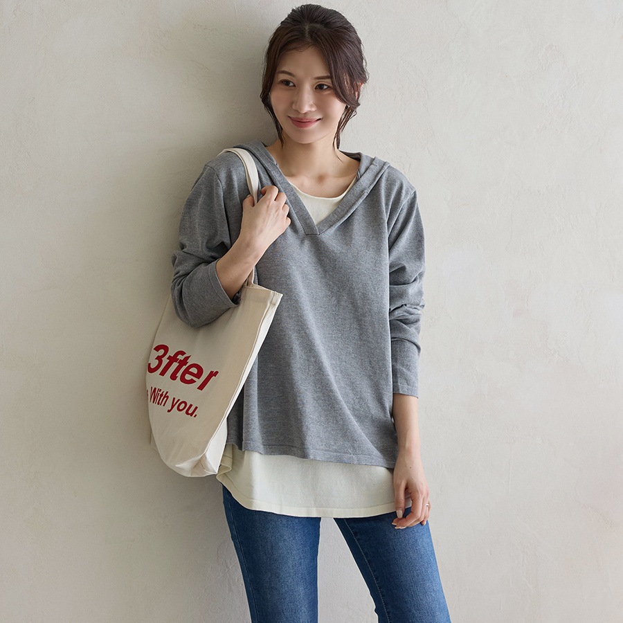 正韓 假兩件連帽針織拼接 上衣寬鬆【W74371】韓國代購 | Foreverkids 韓國時尚精品、韓國代購、正韓空運、洋裝、吊帶褲、外套、針織外套、寬褲