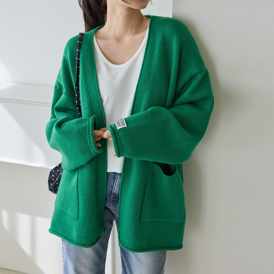 正韓 5色雙口袋捲邊針織開襟衫 外套【A74381】韓國代購 | Foreverkids 韓國時尚精品、韓國代購、正韓空運、洋裝、吊帶褲、外套、針織外套、寬褲