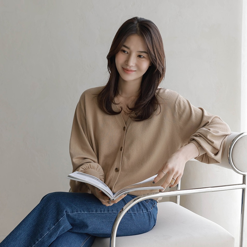 首頁 > 全部商品 > 正韓 自然蓬鬆袖V領開襟針織外套【B74381】
