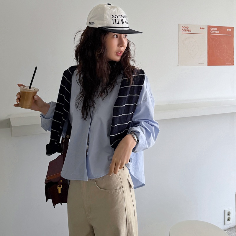 正韓 好美顏色棉半短純色素襯衫【C74381】韓國代購 | Foreverkids 韓國時尚精品、韓國代購、正韓空運、洋裝、吊帶褲、外套、針織外套、寬褲