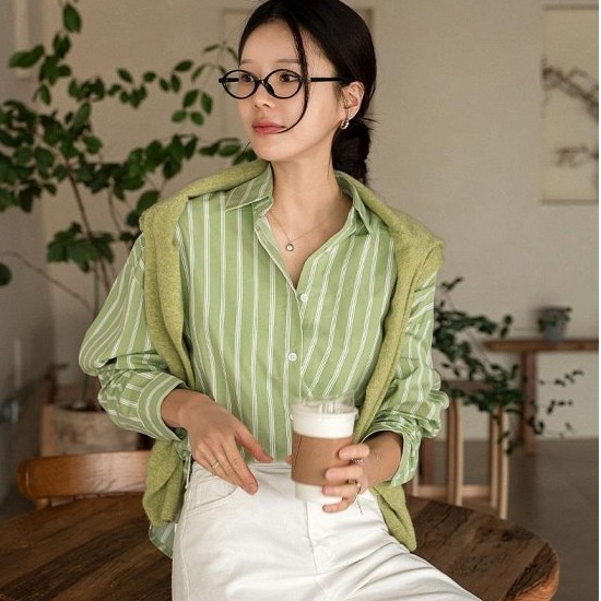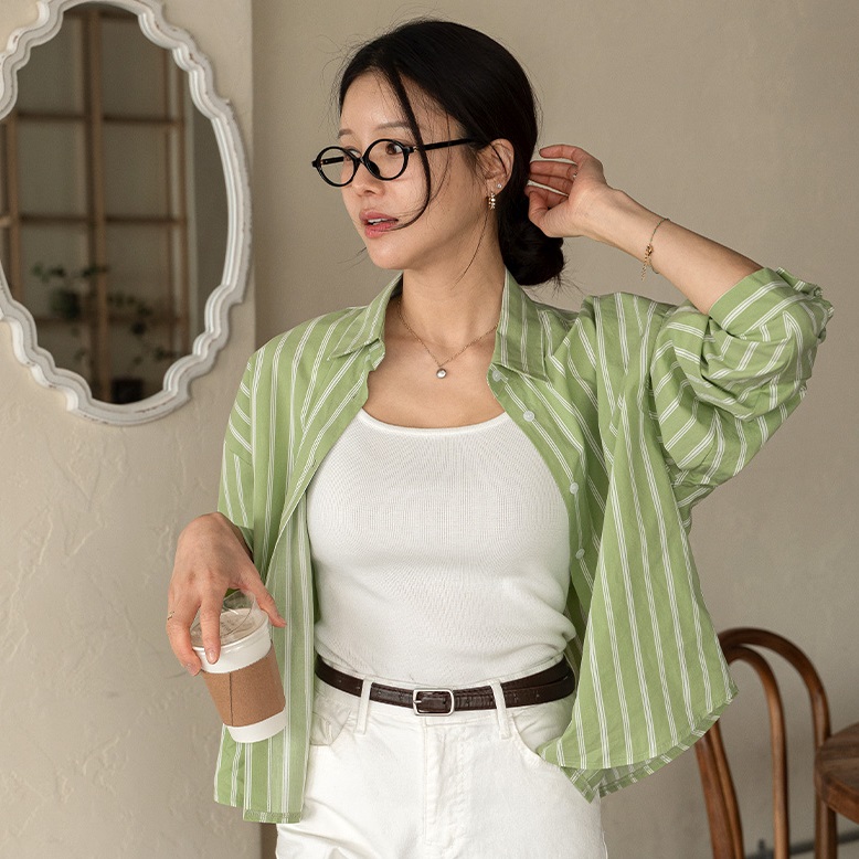 首頁 > 全部商品 > 正韓 清爽純棉半短條紋襯衫【B74383】