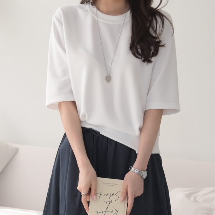 正韓 簡約抓褶腰彈性好搭T上衣【C74385】韓國代購 | Foreverkids 韓國時尚精品、韓國代購、正韓空運、洋裝、吊帶褲、外套、針織外套、寬褲