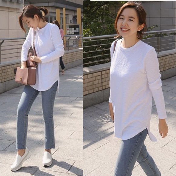 正韓 圓領基本長版開岔下擺X線上衣T【C74421】韓國代購 | Foreverkids 韓國時尚精品、韓國代購、正韓空運、洋裝、吊帶褲、外套、針織外套、寬褲