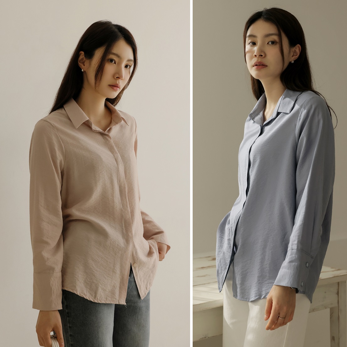 正韓 柔和垂墜輕盈微光澤 寬鬆襯衫【A75306】