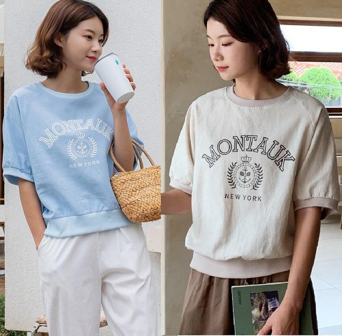 正韓 棉麻印花下縮上衣T【H66332】韓國代購 | Foreverkids 韓國時尚精品、韓國代購、正韓空運、洋裝、吊帶褲、外套、針織外套、寬褲