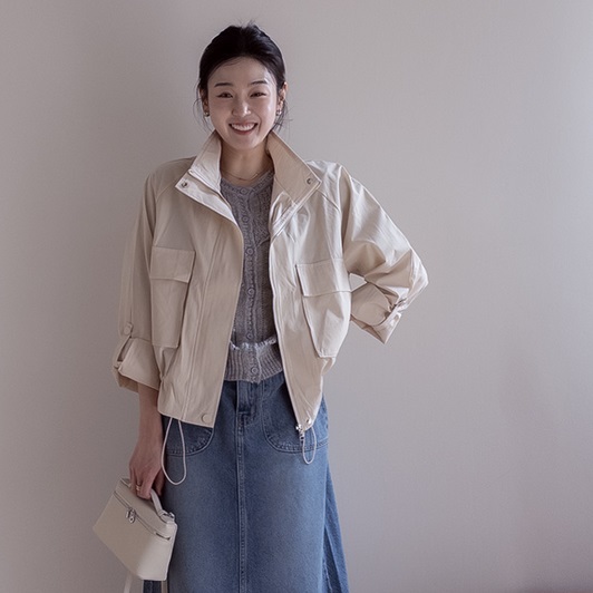 首頁 > 全部商品 > 正韓 下擺抓褶立領拉鍊 外套【A75259】