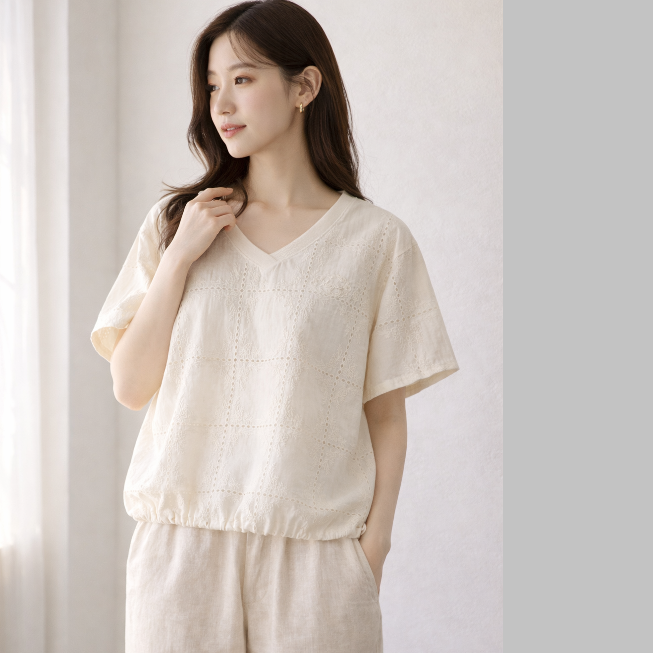 首頁 > 全部商品 > 正韓 刺繡V領下抽繩上衣【E75328】韓國代購