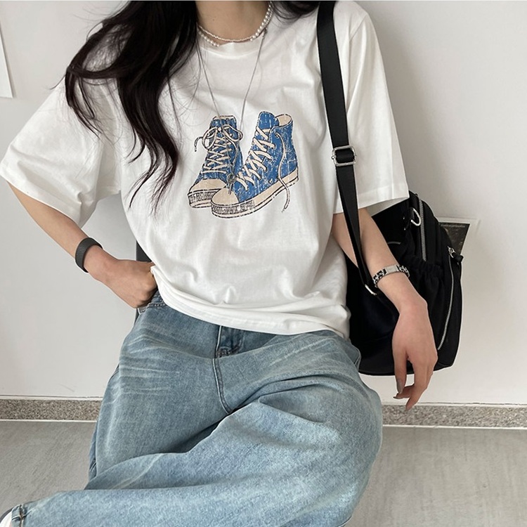 正韓 復古斑駁感印花五分袖上衣T【E75352】韓國代購 | Foreverkids 韓國時尚精品、韓國代購、正韓空運、洋裝、吊帶褲、外套、針織外套、寬褲